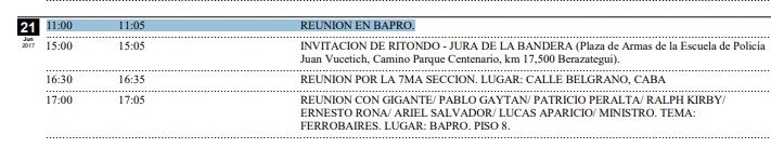 Aquel 31 de julio de 2017, con nueve minutos de diferencia, al edificio de la AFI entraron el ministro de Trabajo de la Nación Jorge Triaca, su par Marcelo Villegas y el también bonaerense subsecretario de Justicia, según consta en el libro de ingresos de la AFI escrito a mano.