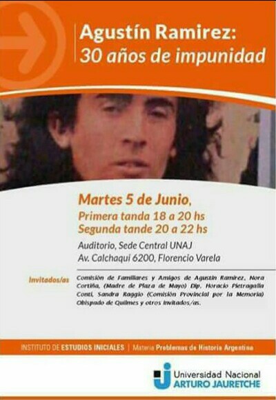La Universidad Nacional Arturo Jauretche (UNAJ) conformó dos mesas redondas para hablar de “Agustín Ramírez, a 30 años de impunidad”, y su Centro de Estudiantes plantó en el predio un árbol al que le impusieron el nombre del joven.