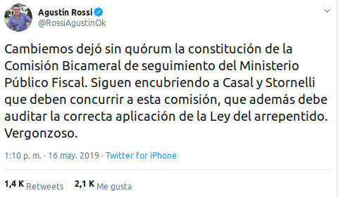 El otro escenario es el Congreso. Allí se esperan novedades esta semana. La oposición intenta constituir la Comisión Bicameral de seguimiento y control al Ministerio Público fiscal, creada originalmente para perseguir a Alejandra Gils Carbó y cuya única agenda ahora es pedirle cuentas al jefe de los fiscales interino, Eduardo Casal y al protegido Stornelli. La Bicameral debió haber sido constituida en diciembre de 2017. Primero hubo una discusión por la presidencia. El oficialismo quiso poner a Elisa Carrió. La oposición no aceptó. Luego oficialismo y oposición consensuaron a Silvia Lopesnnato del PRO, recordada por su posición a favor de la despenalización del aborto. El miércoles cuando los acuerdos preveían finalmente el comienzo de la reunión para formar la comisión, Lopesnnato renunció. Y en el Congreso hablan de una interna dentro del espacio político del gobierno: nadie quiere pagar el costo de pegarse a una silla cuya única función es convocar a Casal y a Stornelli. En ese contexto, el oficialismo hizo una nueva jugada también destinada a ganar tiempo. Reemplazó a Lopesnnato en la lista por el nombre de Graciela Ocaña, amiga del fiscal Stornelli y nombrada por el propio juez de Dolores durante su intervención en el Congreso.