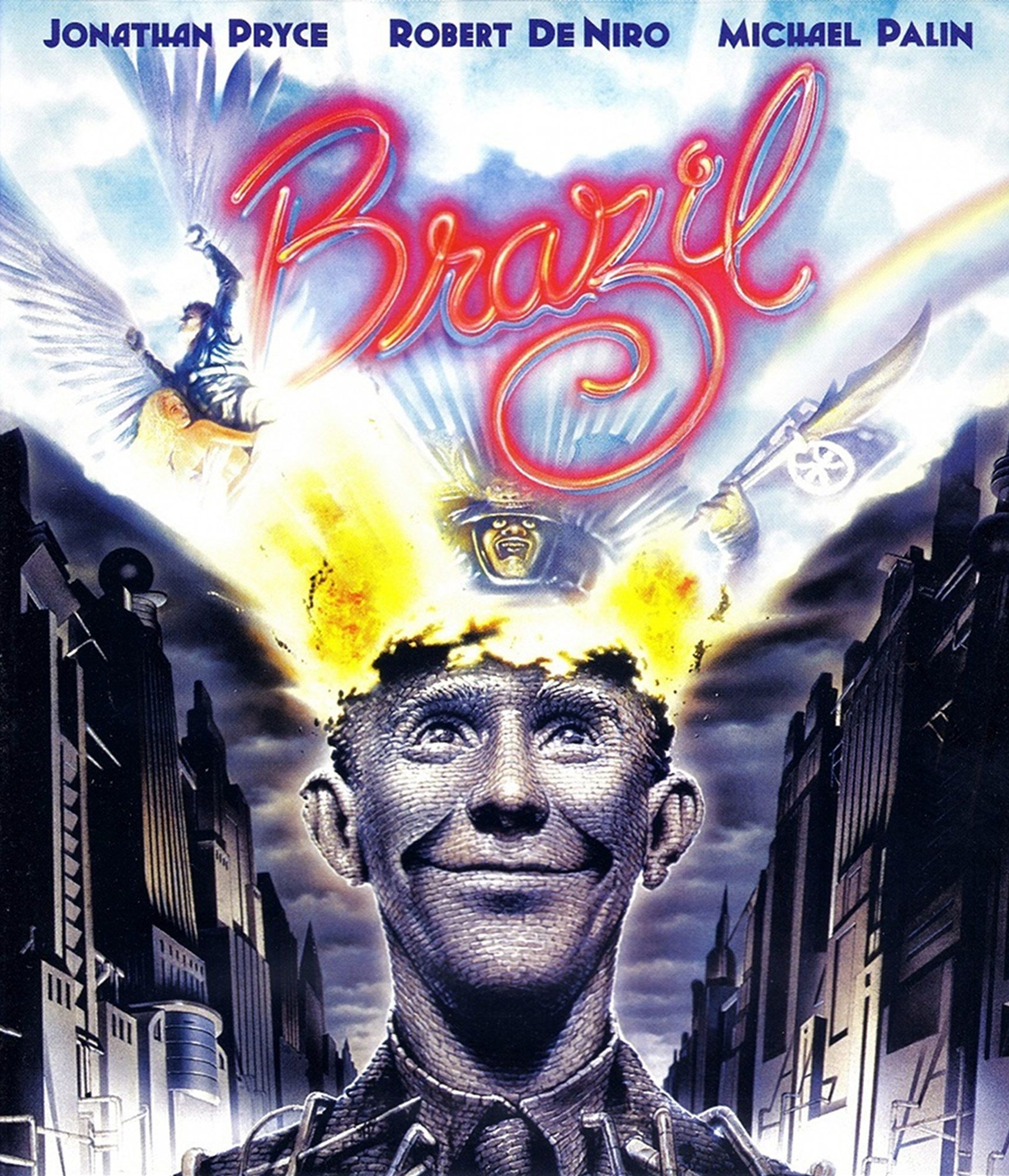 Y Brazil, claro. Que es una suerte de relectura en clave cómica del 1984 de Orwell (Gilliam dice que concibió la historia porque se aproximaba ese año icónico) y está situada en una sociedad totalitaria donde el poder visible reside en manos de un Ministerio de la Información. La otra gran influencia literaria que preside sobre ese universo es la de Franz Kafka, desde que todo allí es burocracia y un error de esa índole pone en marcha la maquinaria del relato. Un cagatintas mata a un bicho que le molesta, el bicho aplastado cae sobre el teclado de una proto-computadora y en vez de escribir Tuttle —el nombre de un "subversivo" a quien se quiere atrapar— escribe Buttle en una orden de arresto y todo se descarrila... por un rato, al menos.