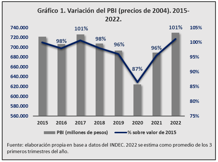 La característica más mentada del descontento colectivo se identifica con el nivel de vida de los argentinos, que se percibe tan mal como en el año del cambio de gobierno, con el agravante de la decepción que provoca que la situación no se haya resuelto. Es oportuno detenerse a analizar el estado de la economía frente a 2015, antes de que el gobierno de Cambiemos la indujese en la decadencia que se mantuvo con el Frente de Todos, a los fines de dilucidar su significado como problema político.