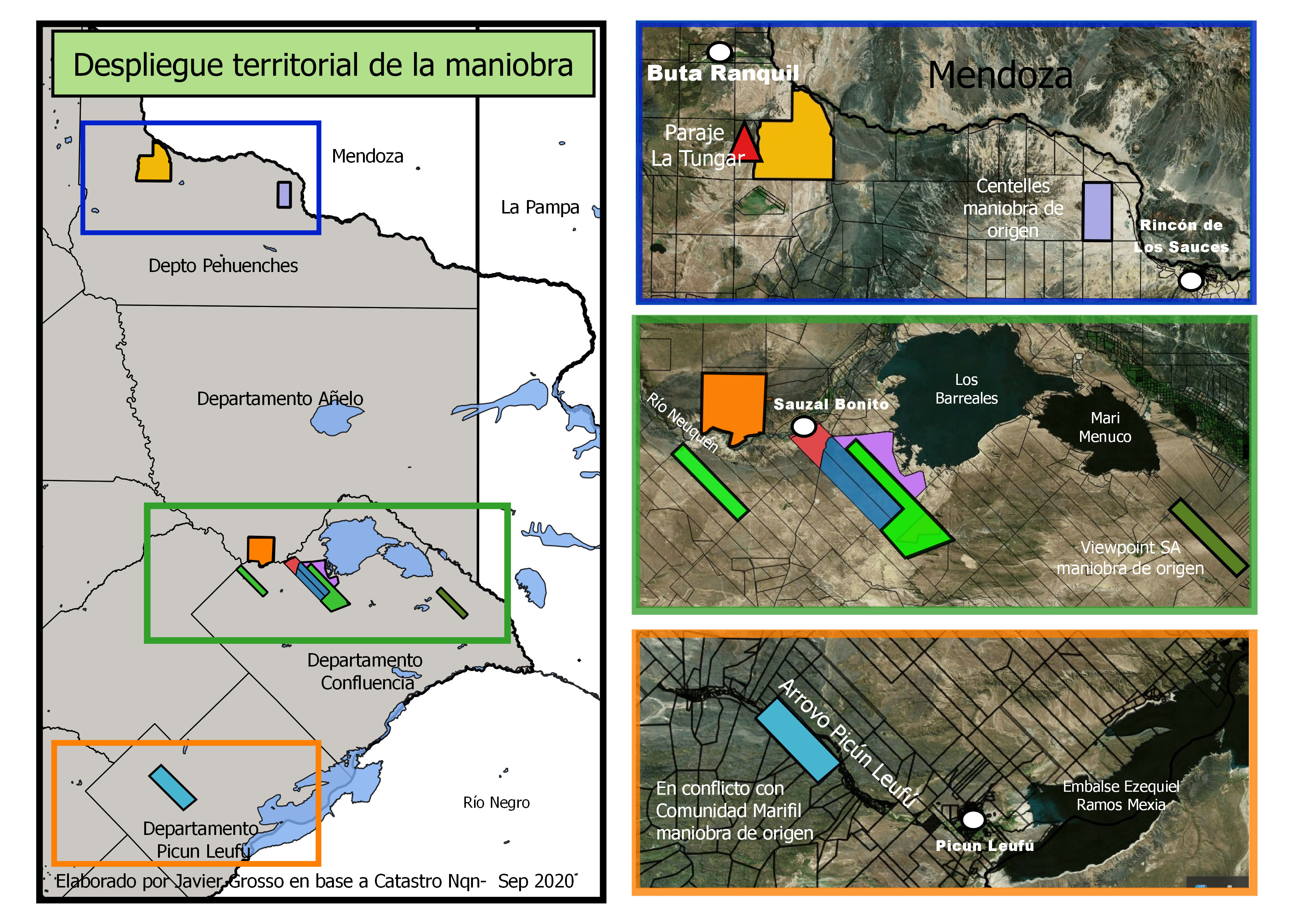 - En Aguada de los Pobres, departamento Añelo, 9.000 hectáreas a nombre de Milla Hue SEA, Antonio María Delfino y otros;