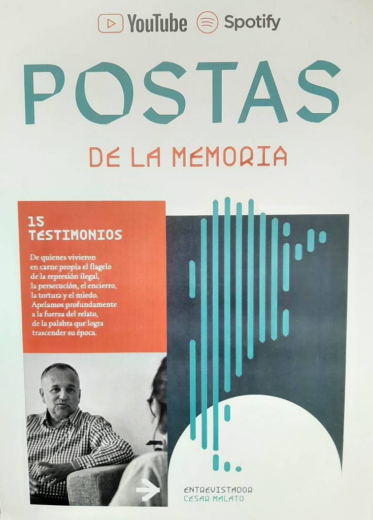 “Son once entrevistas con otros tantos testimonios ‘sufrientes’ de la prisión y/o el exilio en los años '70 y '80”, explica el comunicador César Malato, responsable de Postas, transmitidas a través de las más variadas redes sociales y el Canal Santa Fe TV. Como principal desafío de esta iniciativa, “en tanto que actor de mi generación emergente (la que ahora tiene en torno a 50 años) buscamos que las y los jóvenes de hoy se apropien de esa memoria”, explica.