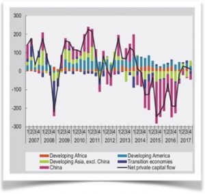 Un reciente informe de la Conferencia de las Naciones Unidas para el Comercio y el Desarrollo (UNCTAD) muestra cómo el cambio de orientación de las políticas monetarias de los principales bancos centrales del mundo, impactó fuertemente en el flujo de capitales hacia países emergentes. Frente a la crisis de 2008, el uso de políticas llamadas “no convencionales” (tasas de interés cercanas a cero y/o negativas en algunos casos), estimuló inversiones de portafolio en economías emergentes. Sin embargo, cuando en 2014, la Reserva Federal de Estados Unidos (FED) retomó el sendero paulatino de alzas en el nivel de tasa de interés, los flujos de capital comenzaron a emigrar nuevamente hacia economías desarrolladas.