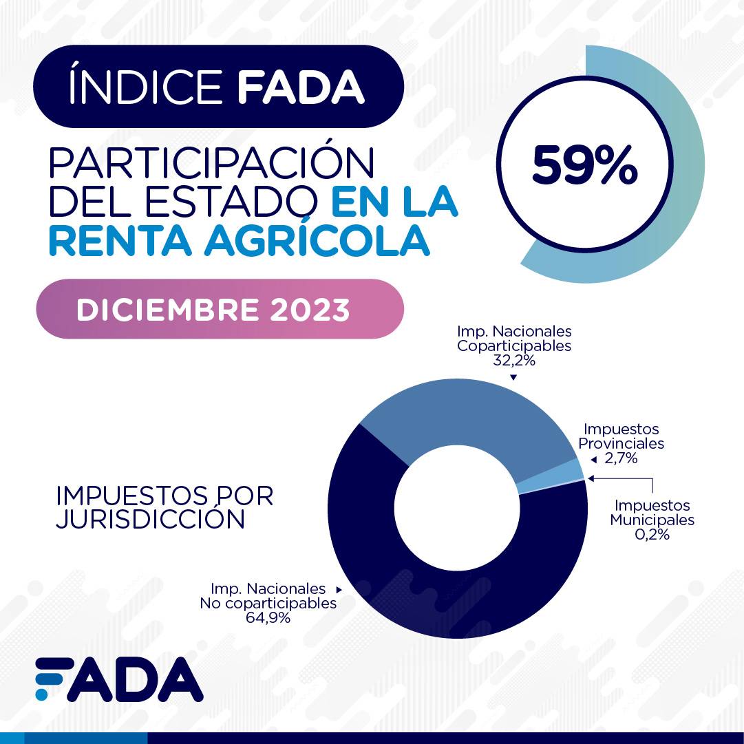 Como sea, ahora de cada 100 pesos de renta que deja una hectárea agrícola, solo 59 pesos quedan en poder del Estado, explicaron desde FADA. Nunca antes la presión fiscal fue tan baja como ahora desde que se hace este ejercicio económico. La Fundación formada por productores de Río Cuarto comenzó a hacerlo hace diez años. En diciembre de 2013, en los albores de este índice, la presión fiscal era de 73,6%.