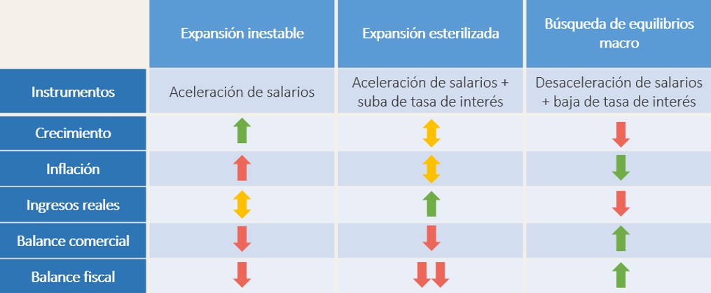 Según el modelo que hemos desarrollado, no existe ninguna vía para alcanzar simultáneamente crecimiento, menor inflación, mayor salario y superávit gemelos, de la manera que se logró en la década ganada. No vemos, según nuestro análisis, la posibilidad de “tocar intereses” y de esa forma resolver mágicamente los complejos equilibrios que requiere nuestra economía. Esto se debe fundamentalmente al estancamiento sufrido desde el año 2013 en adelante, agravado por la doble crisis del macrismo y la pandemia. Si resultó difícil generar mejoras sustanciales en los últimos años del gobierno de CFK, hoy con una torta mucho más pequeña es evidente que enfrentamos un trilema de imposibilidad, al menos bajo las normas del capitalismo contemporáneo y las estructuras de poder vigentes en la Argentina y América Latina.