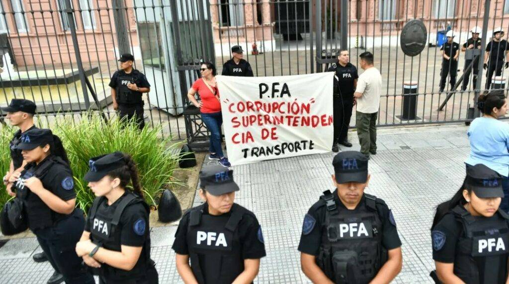 🚨 Esposado a las rejas de la Casa Rosada, Miguel Ángel Montiel, cabo de la Policía Federal Argentina, denuncia corrupción en la Superintendencia de Transporte