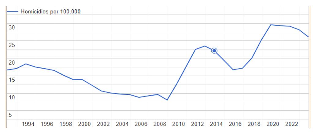 Tasa de Homicidios en México (1990-2023)