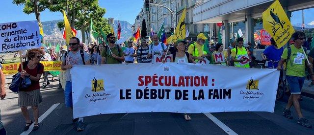 La Vía Campesina reitera que la agricultura en el mundo produce lo suficiente como para soportar un periodo más largo de crisis. El problema, según esta organización, no es la falta de alimentos, sino el hecho de que las grandes empresas capitalistas que dominan el mercado financiero y de distribución mundial han transformado el comercio de alimentos y productos agrícolas en un mercado altamente especulativo. La mayoría de los productos básicos negociados internacionalmente, ahora están sujetos a contratos a futuro, los cuales pueden comprarse y venderse en el mercado de valores varios cientos de veces al día. De ahí que el precio final de estos productos para los países que los necesitan desesperadamente no tenga ninguna relación con los verdaderos costos de producción ni con la capacidad de compra e importación de dichos países.