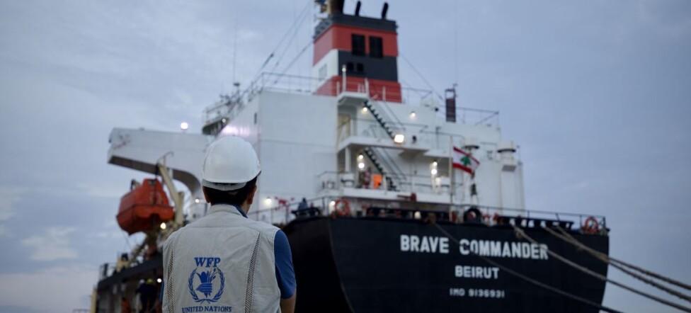 Primer barco del Programa Mundial de Alimentos que partió desde Ucrania para África. Foto: Anastasiia Honcharuk, PMA.