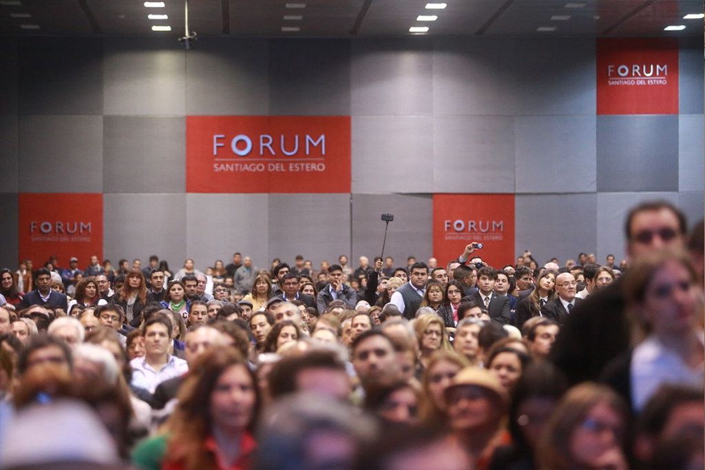El Forum de Santiago es una construcción monumental, que transforma lo que fue una estación de tren en un container para dos mil personas. Afuera la esperan —la vivan— otras veinte mil. Cristina cuenta que ella lo inauguró durante su segunda presidencia, pero que la estación de tren original fue bautizada por Perón y Eva. Alguien de la comitiva del gobernador Zamora tira un año preciso pero equivocado: 1953. Según Cristina hay una foto que los muestra allí, una imagen color sepia que me quedo con ganas de ver.