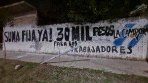 En la lista de cuestiones pendientes de Massa, una de las resaltadas es la recomposición salarial. “Suma fija ya! 30.000 pesos para los trabajadores”, dicen las pintadas que está haciendo La Cámpora.