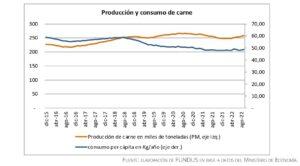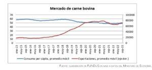 - Entre diciembre de 2015 y agosto de 2022, las exportaciones de carne se incrementaron un 333,9 %, mientras que el consumo per cápita cayó un 17,5 %.