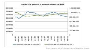 - Este comportamiento se agrava desde finales del 2020 y principios del 2021, coincidiendo con la caída de venta de leche al mercado interno.