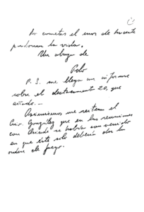 Schiffrin elevó a Righi cuatro hojitas a mano con sus observaciones: “Me indigna que se discutan cuestiones sin ninguna importancia, cuando el problema reside en que Osinde asumió el control y la seguridad del palco excluyendo totalmente a la policía, a la que tenía a su exclusiva disposición, y quiera achacar a la falta de actuación policial el suceso ocasionado por haber otorgado el control del palco a uno de los sectores en conflicto. Me parece que aquí hace falta golpear y duro. Osinde es el que tiene que justificarse ante los ministros. No éstos ante él. No cometas el error de hacerte perdonar la vida”, aconsejó.