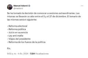 El vocero presidencial Manuel Adormi anunció que entre las leyes que el Poder Ejecutivo enviará a las sesiones extraordinarias del Congreso, figura la reforma política, pero no el Presupuesto, ni la ley migratoria que él mismo había explicado un día antes.