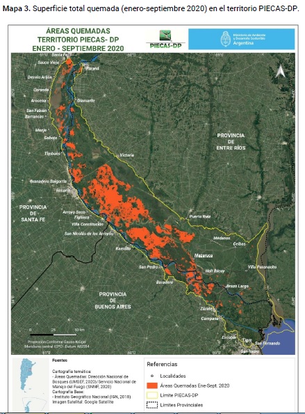 En el período que va de enero a septiembre de este año se quemaron 328.995 hectáreas protegidas del Delta, lo que representa aproximadamente el 14 por ciento de este territorio. Hubo incendios intencionales que afectaron Áreas Naturales Protegidas, bosques nativos y zonas ganaderas. En Córdoba se quemaron otras 300.000 hectáreas.