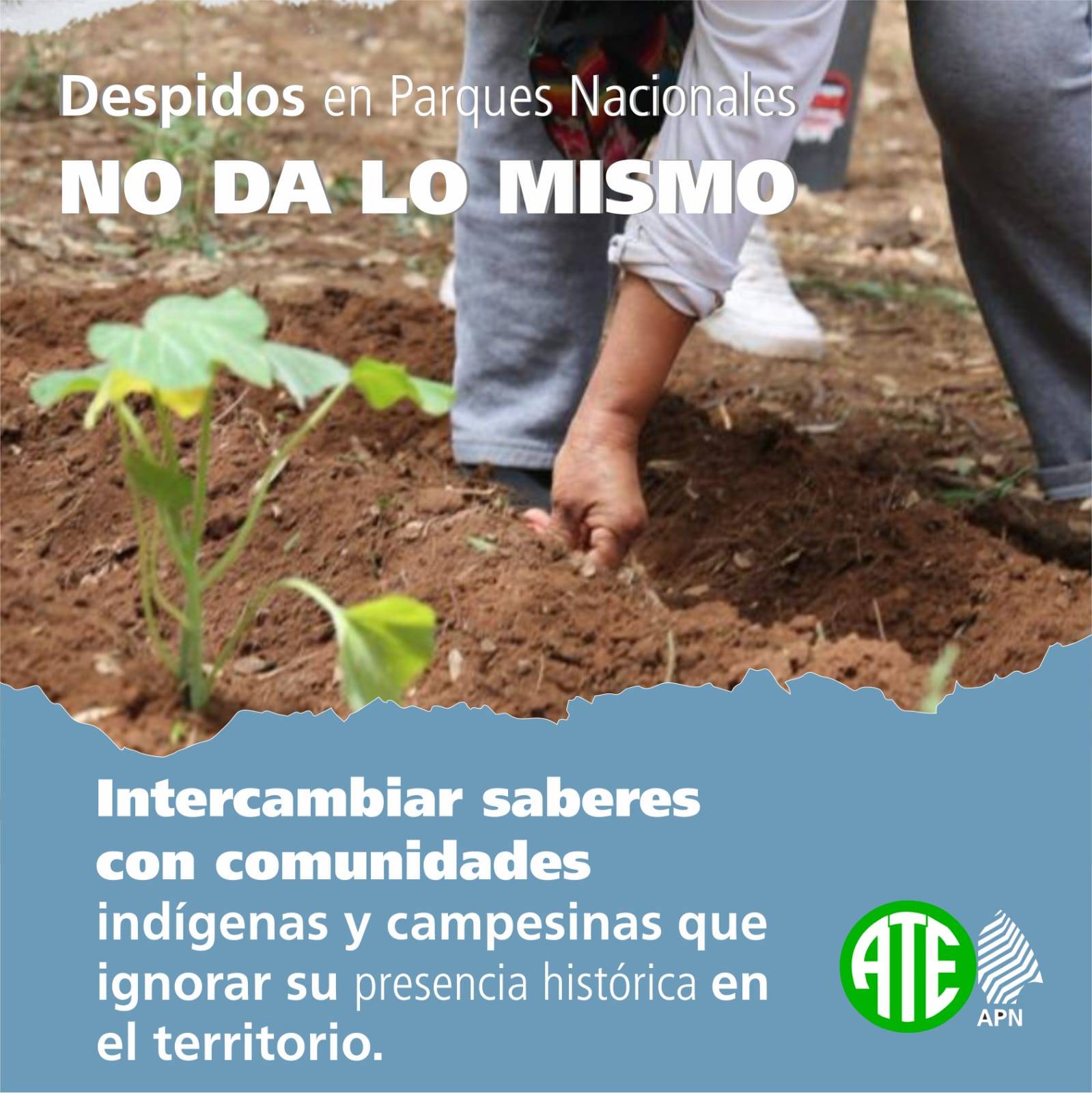 Mientras se consolida la centralización de APN, los trabajadores dejaron en claro que con el recorte de personal quedará en riesgo la gestión del territorio en el día a día, desconociendo su valor como organismo de conservación. Como ningún otro, Parques Nacionales es el único organismo dedicado al cuidado, protección y conservación de los ambientes naturales con toda su diversidad biológica y cultural. “Este gobierno con su desidia y sus cómplices capitalistas ponen por delante las ganancias materiales antes que la Pachamama y toda su totalidad en naturaleza, salud y vida. Nuestras tareas requieren de análisis que trascienden las designaciones de directivos (no idóneos en muchos casos), los gobiernos e incluso nuestra propia existencia. Los tiempos de la conservación necesitan de nuestros mayores esfuerzos para garantizar que el patrimonio, que decimos y promocionamos cuidar y garantizar para las futuras generaciones, realmente se encuentre protegidos, y su aprovechamiento y disfrute sea real y sobre todo ambientalmente sostenible”, se lee en otra parte del comunicado.