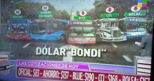 Debemos destacar el rol determinante que juegan los medios de comunicación en la construcción de este discurso invisibilizador del dólar oficial. Lo hacen de manera efectiva, al utilizar como referencia directa al dólar ilegal para calcular cualquier cosa (valor de los servicios, los sueldos de la Argentina en comparación a otros países, etc.). A esto debemos sumar la confusión, derivada en parte de la herencia macrista, que implica la proliferación de distintos dólares: el oficial, el ahorro, el blue o ilegal, el turista, el “contado con liqui” y el bolsa. Esta diversidad es un aporte más a la confusión general. Por eso, risueñamente, los medios hablan del dólar Bondi: