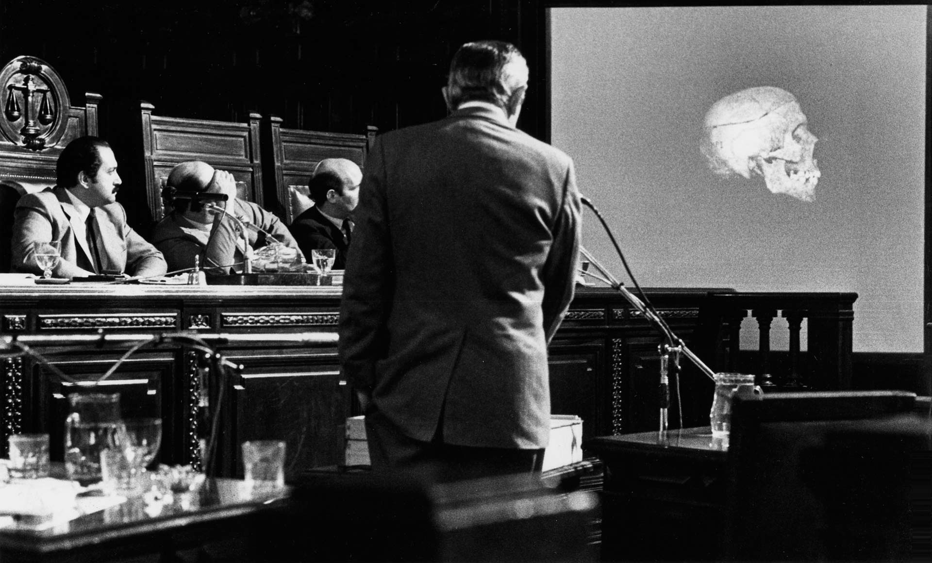 En pocos minutos quedan presentados todos los personajes: incluyendo a Massera, que con característica arrogancia habla de pie, en su propia defensa, pretendiendo que la Historia lo reivindicará; a Videla, que no pronunciará palabra durante todo el juicio (un plano detalle lo revela leyendo, o fingiendo leer, un libro llamado Las siete palabras de Cristo); al brigadier Lami Dozo, que dice que quien debería ser juzgado no son ellos sino "el veleidoso pueblo argentino" que les retiró su apoyo; al pueblo mismo, representado por público, invitados y periodistas repartidos entre los bancos y las gradas altas. (Disfruté de un plano que me reencontró con el Horacio Verbitsky a quien, por entonces, acababa yo de conocer.)