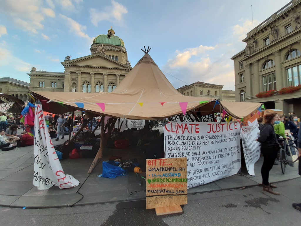 Centenares de jóvenes militantes ambientalistas ocuparon en la madrugada del lunes 21de septiembre la Plaza Federal de Berna, lugar simbólico de las grandes movilizaciones político-sociales del país.