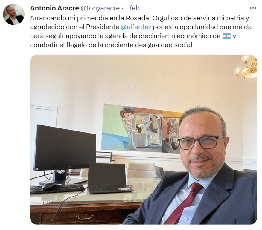 Además Aracre, a diferencia de otros personajes menores y turbios que lo precedieron, no proviene de roscas políticas poco conocidas. Conoce el gran mundo empresarial porque tiene una larga trayectoria allí adentro.