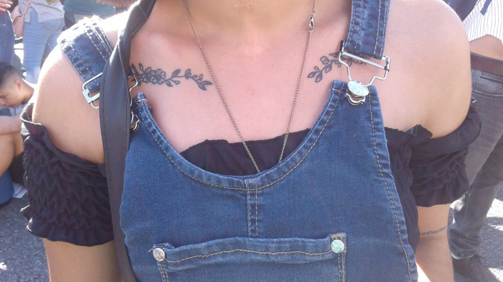 "Vengo porque esto nos moviliza a todas como mujeres que somos. Para decir basta de violencia. Es lo que les enseño a mis alumnas: que aprendan a defender sus derechos, a conocerlos, a cuidar sus cuerpos de todos y de todas". Ella es una de las que se acercó por primera vez a las convocatorias del movimiento de mujeres en junio de 2015, aquel momento en el que la calle mostró que algo distinto empezaba a pasar. Pero así como en aquel momento la calle parecía trazada por historias de violencia en primera persona y mujeres que comenzaban a contarlas en voz alta, este 8M pareció poner de manifiesto la construcción más transversal de algo distinto. No había sólo cuerpos escritos. Había movimiento organizado. Y eso aparecía reflejado hasta en la repetición de símbolos en los cuerpos. Tal vez de eso se trató ese pañuelo verde que algunas llevaron en los puños, otras en el cuello o como abrigos livianos sobre torsos despojados de remeras.