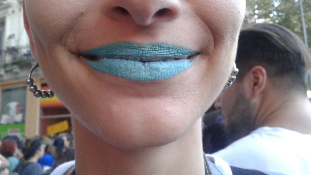 "Estoy trabada acá, en Piedras", decía la chica a su teléfono celular. Una mujer se puso a cantar en voz bien fuerte: Obrera / escucha / tu lucha es nuestra lucha. Otras la siguieron. Y luego otras más. Un cartel con la imagen de Diana Sacayán emergió desde la cabecera. Alguien dijo entonces: "¡La muerte de Diana la vamos a pelear con nuestra lucha!" Atrás flameó la segunda imagen del día: la bandera de la campaña del aborto legal.