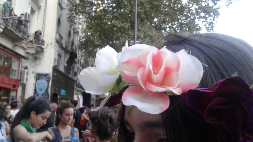 "Hoy veo mucha más cantidad de mujeres. Y veo mucha mas fortaleza", dice. "Expresada en los cantos y también en los cuerpos. Y veo también cuerpos combativos. Fortalecidos. Veo una organización de las mujeres. Como un Partido. Veo mujeres que otra vez aparecen en un contexto de una hostilidad como el que conocí cuando acompañaba a mi viejo a la carpa docente en el menemismo. Pero también veo un nuevo orden del espacio: un orden que tiene que ver con el cuidado. Lo veo en la organización, en los cordones de seguridad, en las columnas. Una colectivo en el que nos cuidamos".