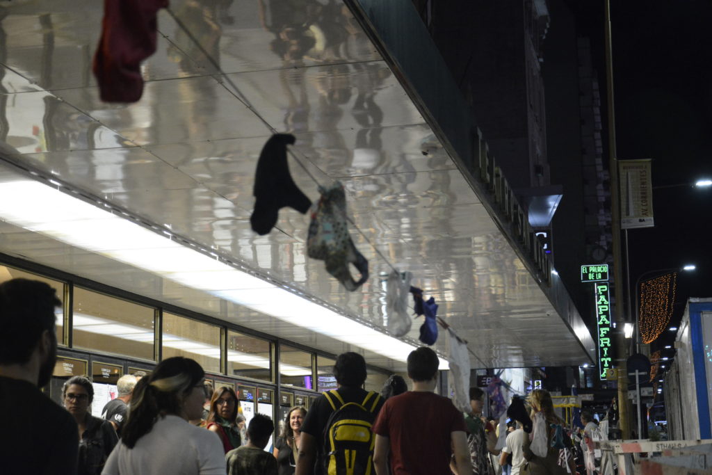 Hay aire de tienda de ropas en medio de las calles con algunos percheros. Un vendedor cuelga remeras de Mafalda gritando Basta. Al lado tiene una de la Pachamama. Y otra que dice: Mujer bonita es la que lucha. Hay niñas y niños con sus madres. Cochecitos. Mujeres cuidando esos coches. Niñas con carteles. Adolescentes con tatuajes en las gargantas.