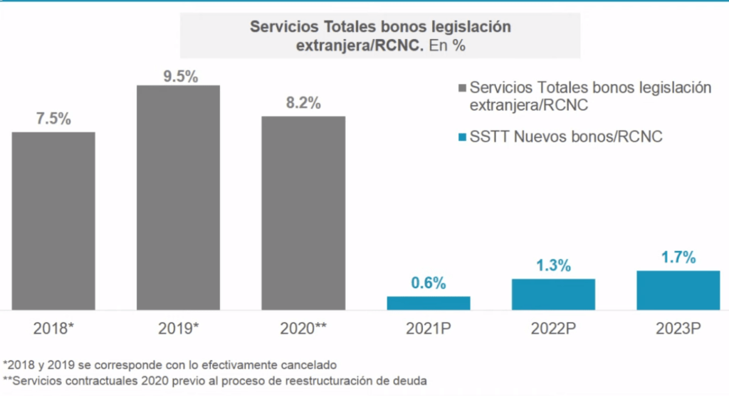 López explicó que la reestructuración permitió reducir el peso de los servicios de deuda en el presupuesto provincial. Solamente los bonos que se reestructuraron “pesaban en 2019 más de un 9% de los recursos de la provincia y en estos años pesan entre 0,6 y 1,7%”, indicó. “Ahí es donde se expresa el alivio. Es decir, la diferencia entre ese peso que tenían los servicios originales y el nivel actual es lo que le da a la provincia mayor fortalecimiento para llevar adelante políticas que son necesarias”.