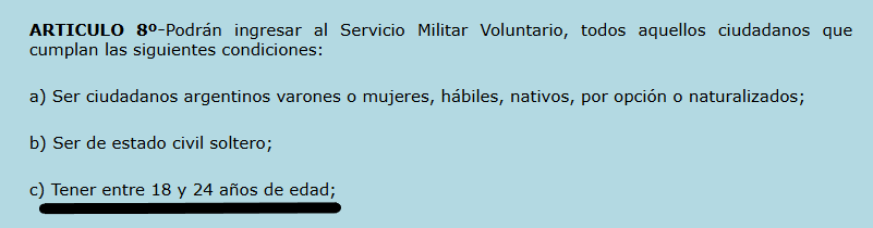 El pasado 29 de mayo, el Ministro de Propaganda, Joseph Adorno, anunció que “el Ministerio de Defensa en conjunto con el de Capital Humano implementará el Servicio Militar Voluntario para jóvenes de entre 18 y 28 años que deseen servir a la Nación”. Dijo que el servicio “formará y certificará a los ciudadanos en oficios concretos, como cocina, talleres mecánicos o tareas de vigilancia, que les ayudarán a seguir construyendo su futuro”. “Quien sirve al país debe tener también las herramientas para desenvolverse con dignidad cuando termine su servicio”, leyó, y agregó que “el propósito de este de este nuevo Servicio Militar Voluntario es inculcar en los jóvenes argentinos los altos valores que siempre caracterizaron a las Fuerzas Armadas”.