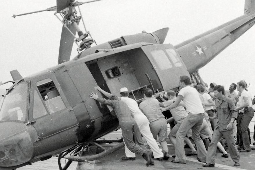 En la iconografía política habría que incorporar, sin muchas dudas, las imágenes de los helicópteros, unos vehículos que ya son símbolos de la derrota y la fuga. En una de las mejores notas traducidas por La Nación en mucho tiempo, se dan detalles de la huida estadounidense de Saigón en 1975. Allí se aclara que la famosa imagen del helicóptero sobre una especie de gran tanque de agua y abordado con desesperación por civiles fue una arriesgada maniobra para rescatar personal de inteligencia que había quedado aislado en un edificio de la ciudad vietnamita en la precipitada retirada. No retrata, como se suele creer, a los últimos evacuados de la embajada estadounidense.