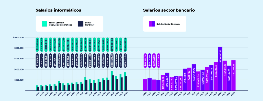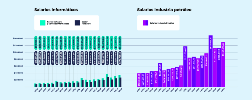 Por otro lado, el informe ofrece una comparativa entre los salarios de esa industria con la de rubros que históricamente se ubican dentro de los mejor remunerados.