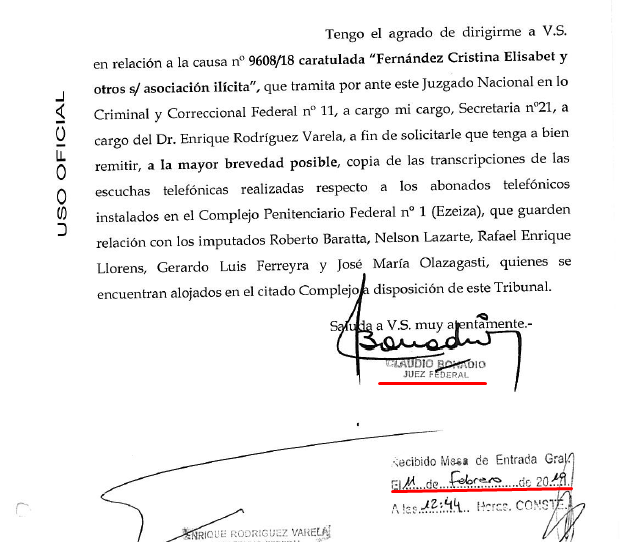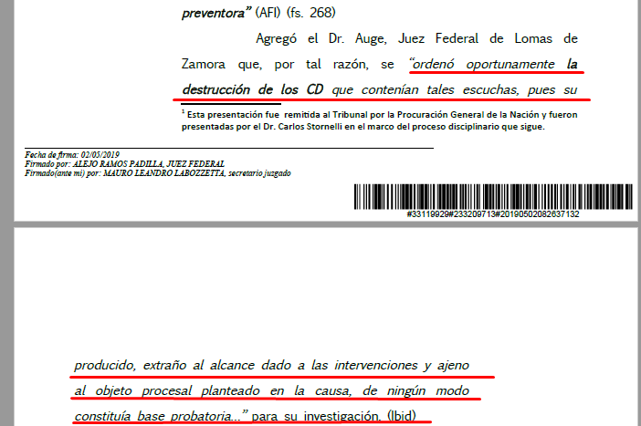 Lo curiosísimo del caso es que Bonadío reclamó las escuchas en la causa "Cuadernos"…causa de la cual Stornelli es fiscal. De hecho, constan en el expediente. Hace unos días, buscando otra cosa ya que soy abogada en esa causa, me encontré esa certificación y casi me caí de culo.