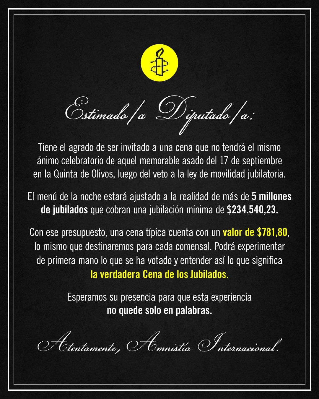Esa otra forma de exhibicionismo motivó que la sección local del más prestigioso organismo mundial de derechos humanos tuviera una de sus más ocurrentes ideas al convocar a otra comilona, destinada a los mismos legisladores, pero a precio de jubilado, aplicando una fórmula equivalente a la mensualidad mínima dividida por 30 días, cuyo resultado se reduce a un diez por ciento si se estiman los gastos que van desde medicamentos a servicios.