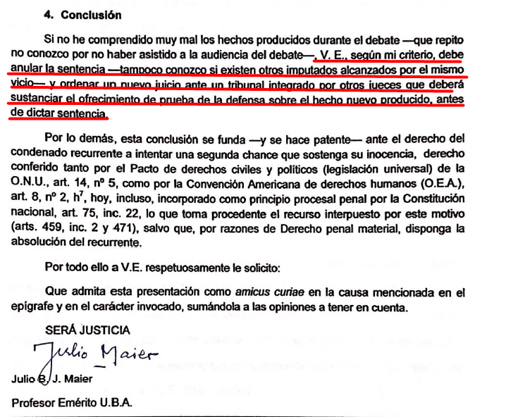 Julio Maier acompañó ese reclamo legitimo de las defensas y le habló con toda claridad a la Casación.