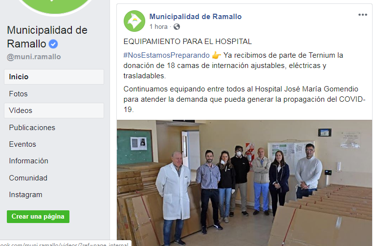 Al mismo tiempo que en una de sus plantas se evalúan suspensiones, Rocca muestra su cara humanitaria de la empresa asistiendo al hospital Gomendio de Ramallo y al provincial San Felipe de la ciudad de San Nicolás. “Hoy entregamos 65 camas en el marco del plan de acción que lanzamos para apoyar a las comunidades de San Nicolás y Ramallo. Son 19 camas de terapia intensiva y 28 de internación para el Hospital San Felipe y 18 camas de internación para el Hospital Gomendio. En los próximos días llegarán los colchones y almohadas junto con otros insumos que serán donados para fortalecer el sistema de salud de la región”, expresaron en su página en Facebook Gente del Acero, con un video institucional. “Ya recibimos de parte de Ternium la donación de 18 camas de internación ajustables, eléctricas y trasladables”, resaltaron desde el gobierno del intendente Gustavo Perié de Ramallo, a través de la página de la Municipalidad en Facebook.