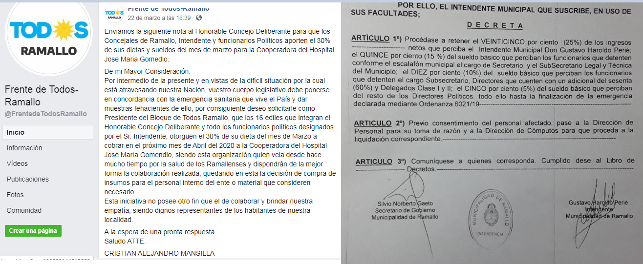 Lo que expresaba el Director era falso, ya que el Gobernador de la provincia de Buenos Aires firmó el decreto que asiste a los municipios bonaerenses con 300 millones de pesos para atender la emergencia sanitaria por coronavirus, decretada el 12 de marzo. La Ministra de Gobierno informó que Ramallo recibió 731.280 pesos. Consultada por El Cohete a la Luna, Teresa García da cuenta del esfuerzo que lleva adelante la provincia de Buenos Aires para asistir al conurbano donde hay gran concentración de personas en condiciones de alta vulnerabilidad. También señala que en próximos días la provincia de Buenos Aires abastecerá con insumos hospitalarios.