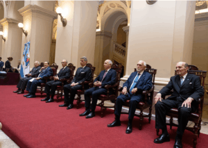 El presidente del tribunal, Horacio Rosatti, dijo que fue "un caso de justicia transicional ejemplar a nivel mundial", que impidió la amnesia en que se basa la impunidad. El vicepresidente de la Corte, Carlos Rosenkrantz, afirmó que “estos jueces pusieron al terror en su lugar, pero lo hicieron dentro de los límites y de acuerdo con lo ordenado por el derecho". Por ende, sostuvo, "a 40 años del fallo la mejor manera de proyectar al futuro su actuación es renovar el compromiso central de adherir incondicionalmente a la legalidad”. El ministro de la Corte, Ricardo Lorenzetti, afirmó que "inauguraron una política de Estado que todos los jueces y juezas han sabido continuar a lo largo del tiempo. La política de memoria y justicia ya forma parte del contrato social de los argentinos". Contra este muro debe chocar el negacionismo y el reivindicacionismo oficial, que carece de inserción social. En la Plaza de Mayo, un grupo de militares retirados se reunió para pedir la libertad de los condenados por Crímenes de Lesa Humanidad. No pasaron de dos docenas.