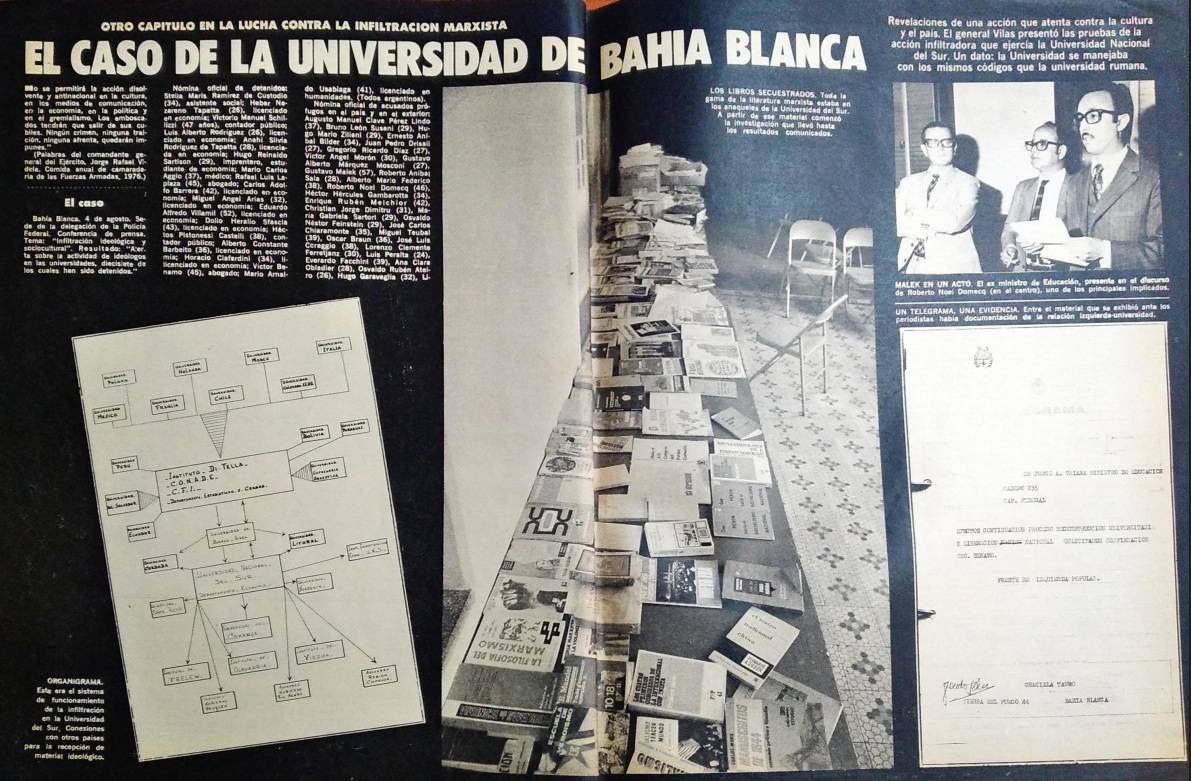 La tarea de Tetu sería elogiada un año más tarde por Vilas, en una conferencia de prensa en que junto al subcomisario Alais presentaron el alcance de la supuesta “infiltración” en la UNS. Una muestra más de la continuidad entre las tres A y las tres Armas, que Rodolfo Walsh describiría en su Carta Abierta de marzo de 1977. En los meses previos, la Agencia de Noticias Clandestina que dirigía dedicó varios de sus cables a informar sobre la persecución hacia el mundo académico de Bahía Blanca. La Nueva Provincia y la revista Gente también cubrían el tema, pero en busca de instalar la versión oficial.