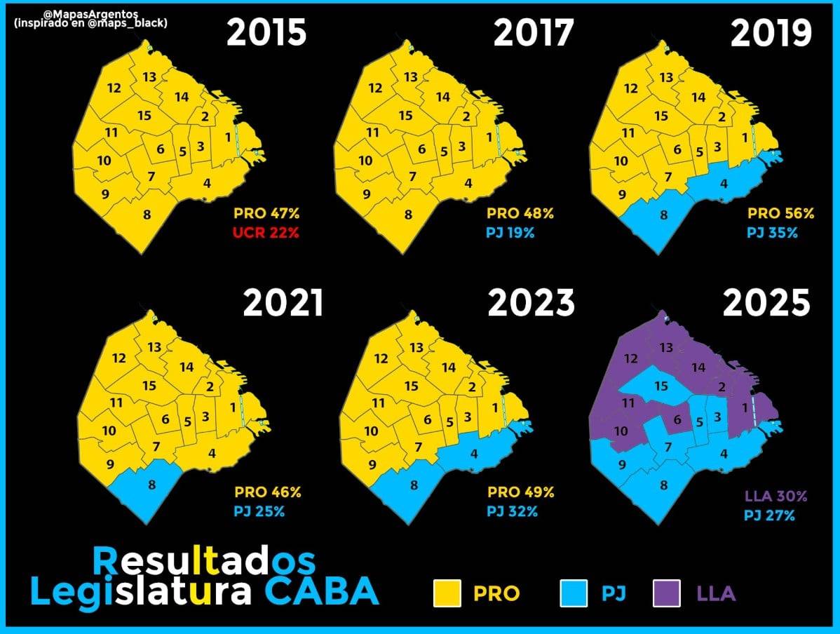 La elección para renovar 30 de las 60 bancas que componen la Legislatura local mostró elementos disruptivos de la política porteña de los últimos 20 años. Entre los más destacados se encuentran la contundente victoria de La Libertad Avanza (LLA), que logró posicionarse como la fuerza más votada; la histórica derrota del Partido Propuesta Republicana (PRO), que por primera vez en casi dos décadas no logró imponerse en su principal bastión electoral, cayendo incluso al tercer lugar y sin ganar en ninguna comuna; y, de manera transversal a todas las fuerzas, el fenómeno de una significativa baja en la participación ciudadana, interpretada por muchos como una señal de descontento o apatía.