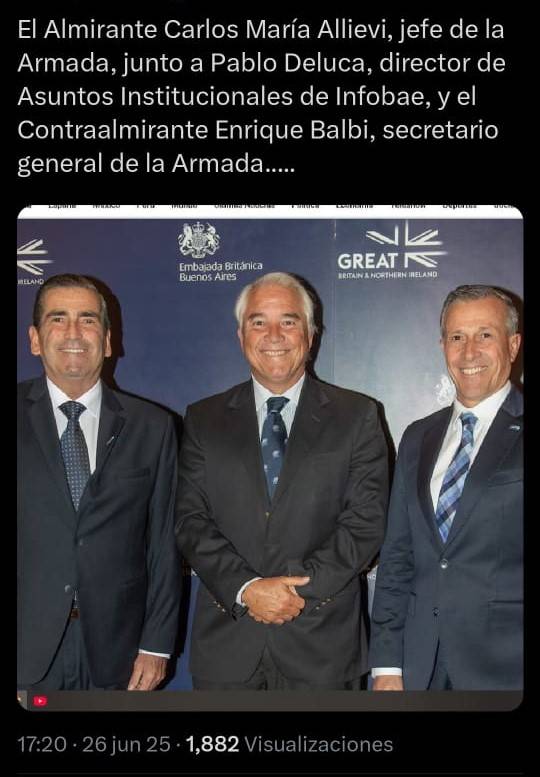 Mientras tanto, el jefe del Estado Mayor Conjunto y de cada una de las tres Fuerzas tomaron el té inglés en la Embajada Británica. Es de suponer que el almirante Carlos María Allievi no habrá perdido la oportunidad de usar su uniforme, donde los efectivos de esa fuerza llevan luto por la muerte del Almirante británico Horatio Nelson (1758-1805) [4] y no por los héroes del crucero ARA Gral. Belgrano.