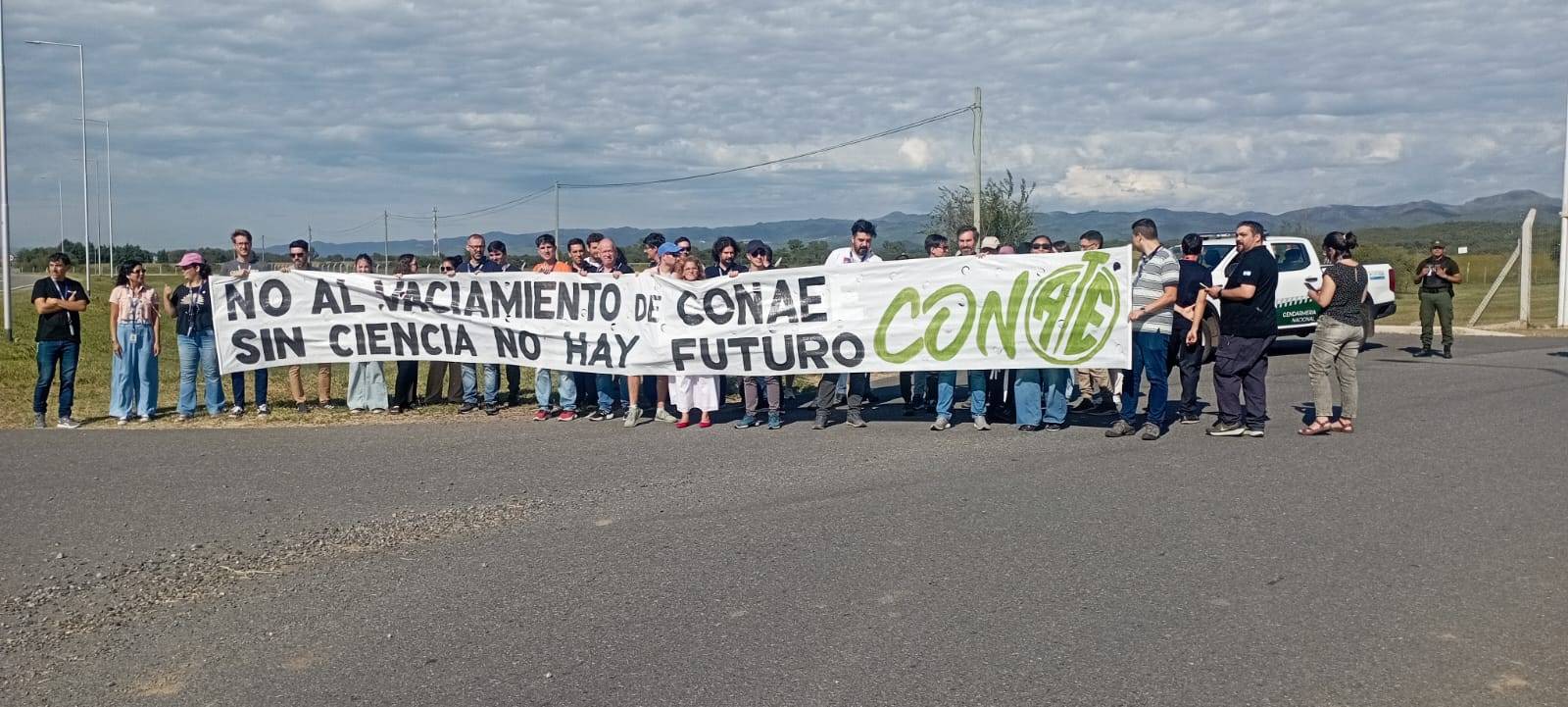 Antes del lanzamiento, trabajadores y trabajadoras se manifestaron fuera del predio cordobés de la CONAE, sobre la ruta provincial C45, donde los automovilistas acompañaron con bocinazos al paso. Una bandera dejó allí constancia de que la situación del sector no ha variado desde que a comienzos de marzo el gremio elaboró un informe sobre las pérdidas presupuestarias y de personal calificado, del 40% y el 20% en comparación con 2023. La sangría incluyó, entre diciembre y marzo últimos, a cuatro integrantes de la Gerencia de Proyectos Satelitales del organismo.