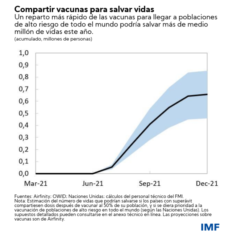 Como se señala en nuestra nota para la reunión del G-20, es vital actuar con celeridad. Según nuestras estimaciones, un acceso más rápido a la vacunación de las poblaciones de alto riesgo podría salvar más de medio millón de vidas sólo en los próximos seis meses.