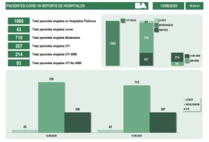El Ministerio de Salud de la Nación, a través de la Resolución 1330/2020 del 10 de agosto, ha constituido el Tablero de Control Interactivo “para conocer el estado de las unidades de terapia intensiva en todo el país con el objeto de posibilitar el seguimiento en tiempo real de los ingresos y egresos de pacientes en las camas de terapia intensiva, de la cantidad de respiradores y de otros recursos críticos disponibles en cada establecimiento de salud con internación del territorio nacional”.