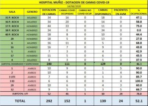 El Hospital Muñiz, referencia local y nacional en infectología, que estuvo en el epicentro de las epidemias HIV-Sida y gripe A, tuvo el 6 de marzo su primer caso de coronavirus. El 7 de mayo, al asistir a la presentación de la remodelación del Pabellón Koch, que sumaba 136 camas de cuidados intermedios para pacientes Covid, Rodríguez Larreta, acompañado de Fernán Quirós, remarcó que “este es el hospital más importante que tenemos, con su especialidad en infectología”. El 23 de junio, de 54 camas UTI, 29 estaban ocupadas con pacientes Covid (54%).