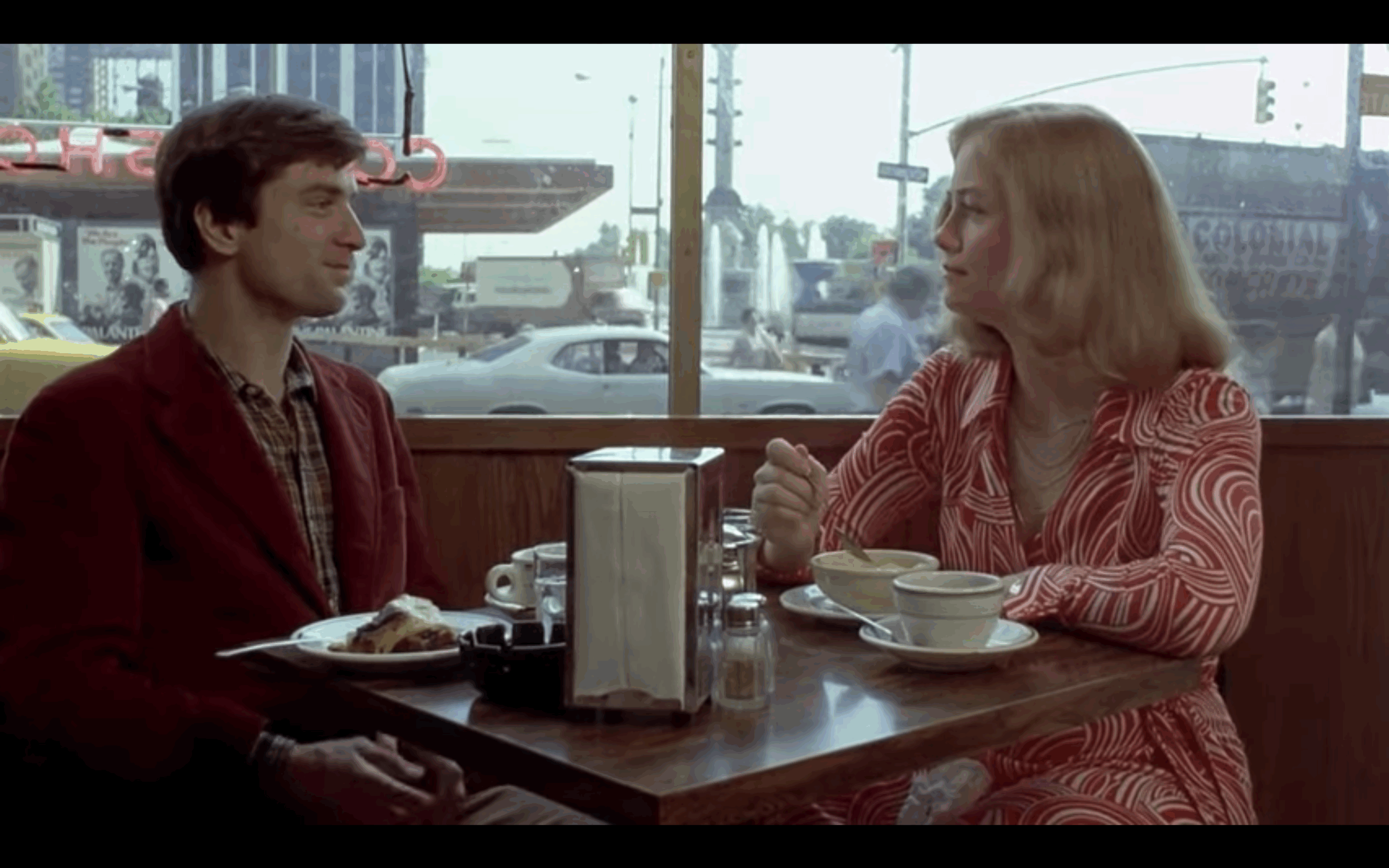 Pero había un costado que se me escapaba. Cuando Bickle, que ha obtenido el sí de Betsy para ir al cine juntos, la lleva a ver una película porno a un cine, me agarré la cabeza. ¿Tanto esfuerzo invertido en llamar su atención, para boicotear la incipiente relación de semejante modo? Era un disparate, ¿o no? Sin embargo, cuando volví a verla esta semana, sentí algo diferente. Casi podría decir que me inspiró ternura. Esta vez me pareció que no se trataba de un gesto desafiante de su parte: lo que el tipo trataba de hacer era llevar a Betsy a conocer su mundo, familiarizarla con su cotidianeidad, sin conciencia de que el común de la sociedad no era como él, y por ende, no veía porno todos los días, y mucho menos de ese modo. En Bickle el porno es un consumo des-erotizante, lo ve en sus horas muertas como muchos consumen fútbol, para matar el tiempo. No lo considera perversión, sino entretenimiento. Pero el (esperable, lógico) rechazo de Betsy lo hace sentir aún más paria de lo que se sospechaba.