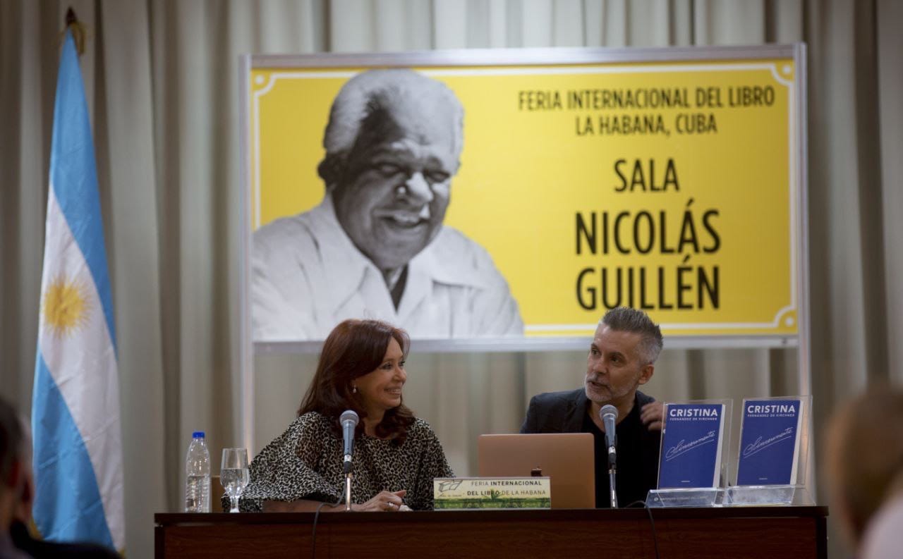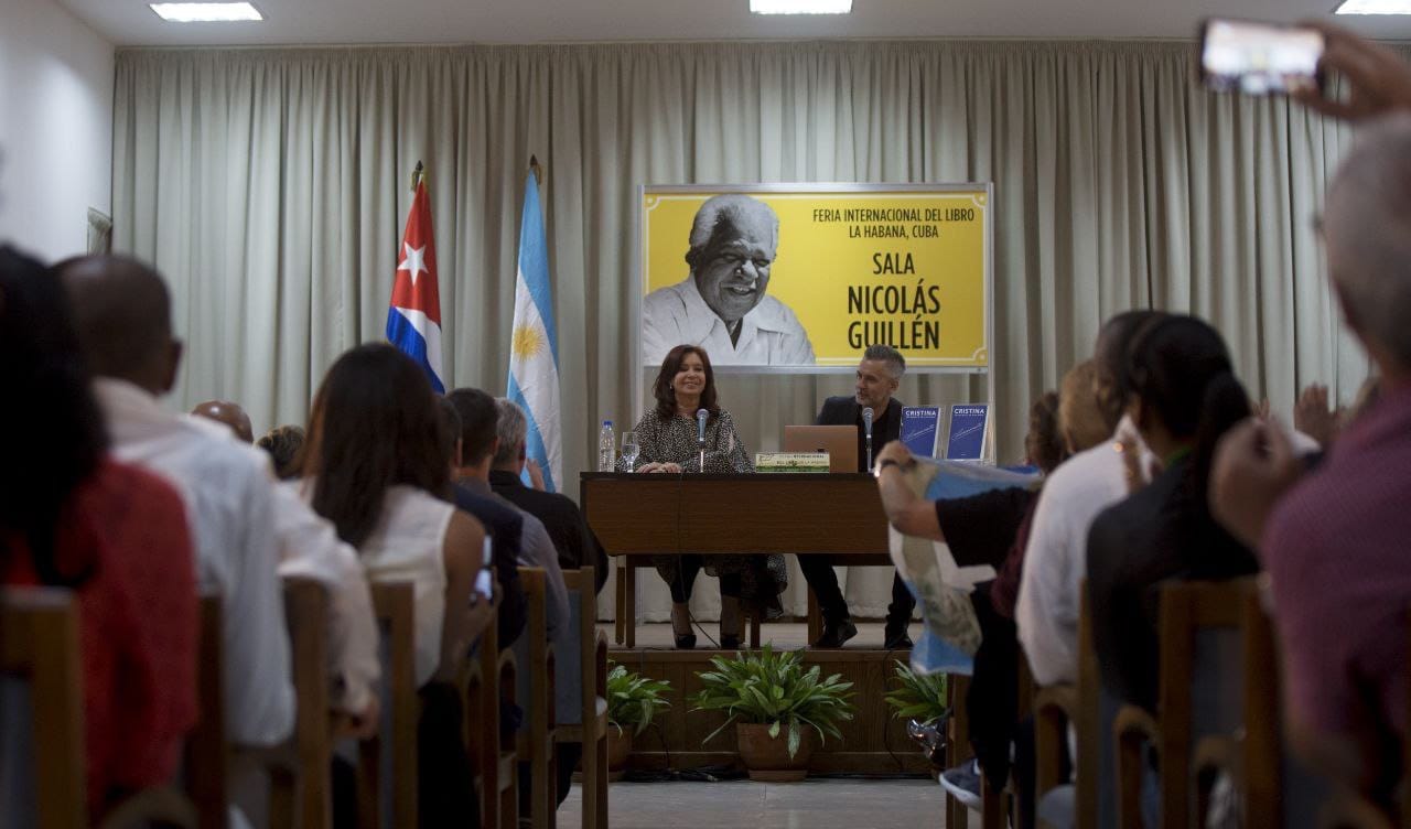 La Feria Internacional del Libro de la Habana tiene lugar dentro de San Carlos de la Cabaña, una fortaleza colonial española que no se priva de las torretas, los cañones ni el foso reglamentario. La sala Nicolás Guillén es la más grande del predio y está llena a tope. Esperar la llegada de Cristina genera ocasiones excepcionales, como la de conversar tras bambalinas con el Presidente cubano, Miguel Díaz-Canel, sobre sus músicos argentinos favoritos —Charly y Fito—, mientras de la sala llegan voces coreando la versión aggiornada del cantito militante. Ya no es más Vamos a volver. Ahora es: Oh... ¡ya volvió!