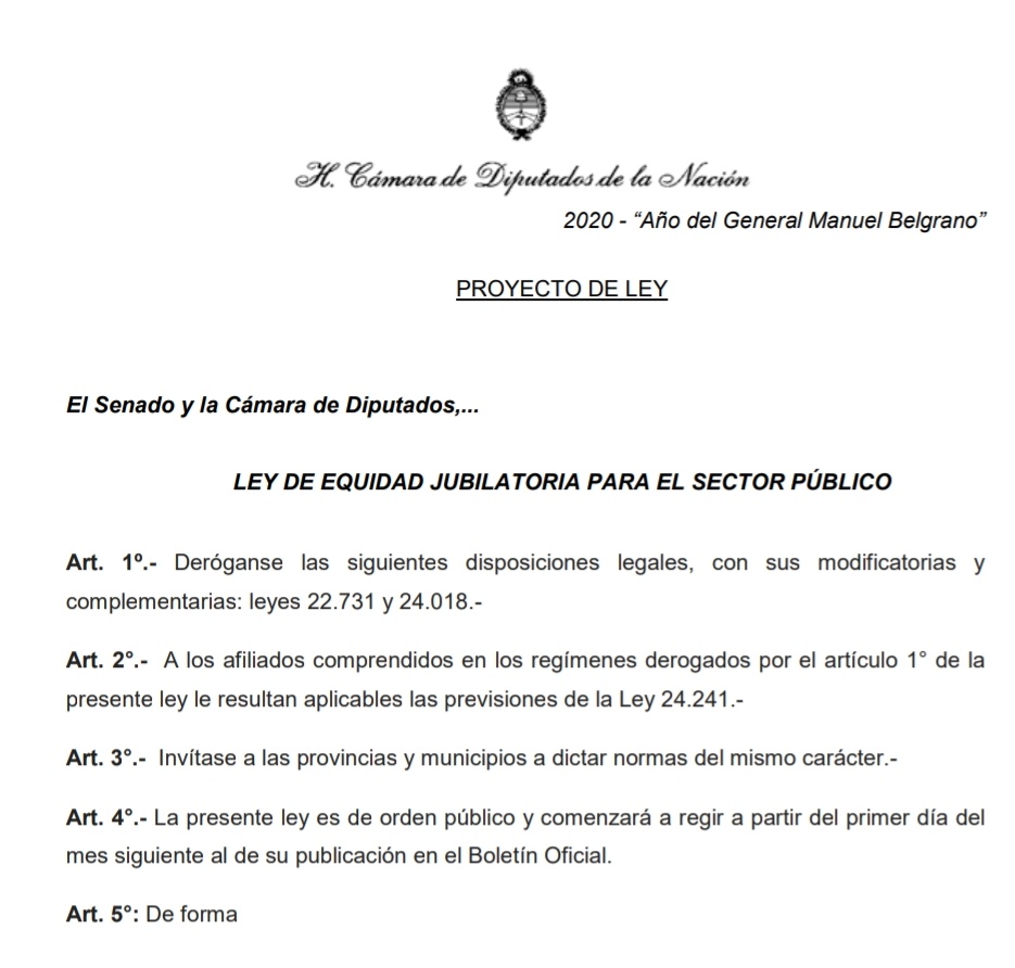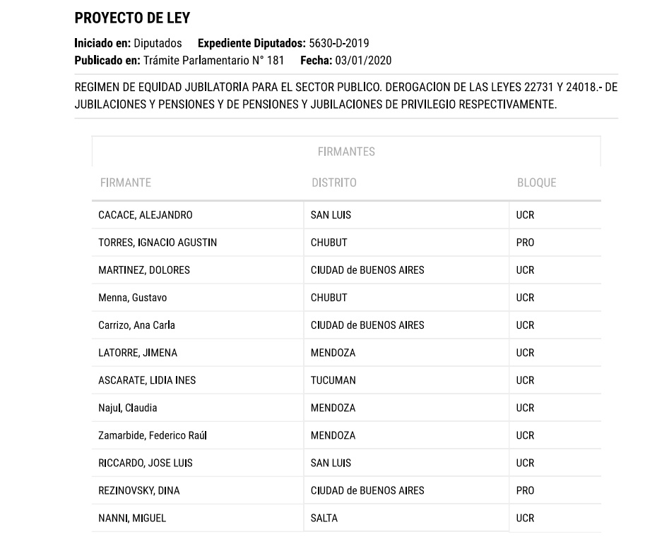 En forma coincidente, el 3 de enero de 2020 Juntos por el Cambio presentó un proyecto en el que proponía derogar el régimen especial de las jubilaciones del Poder Judicial.
